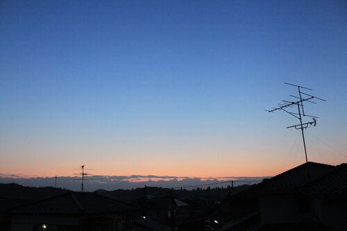 昨晩前線が抜けて、 夜半前には半月過ぎの月が南西の空に残っていました。 今朝は北風のおかげで透明度の高い朝になりました。 朝焼けにならず群青色のグラデーションが東の空から上るだけの空。