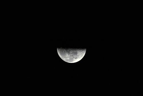 上弦 今日の上弦は最も南寄りの天球を通過。 いつもの景色も違って見える… 月没は22:09(今は21h55m) 最も南寄りだから、月のでも普段よりも南、南中高度も低く、月没も最も南寄りの彼方へと没していきました。